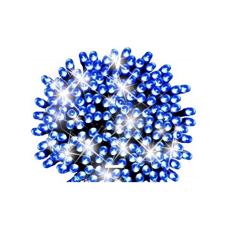 Pekné jednofarebné osvetlenie stromčeka- 500ks led diód modrej farby z úsporou energie s flash efektom kontrastnej studenej bielej farby,to znamená že každá desiata led dióda flashuje čím tvorí efekt jasnejšieho záblesku,v celkovej dĺžke 35m.Led diódy sú bez prehrievania sú vhodné na výzdobu vianočného stromčeka,strechy,podstrešia...používajú sa všade kde potrebujete dosiahnúť svetelný efekt s možnosťou napájania do väčšiej dĺžky – nekonečná reťaz a podobne,sú vhodné do interiéru aj exteriéru majú ip krytie IP44.