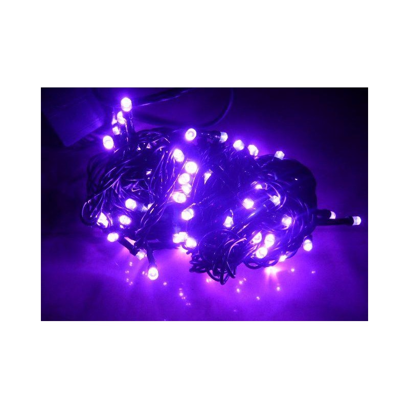 Pekné jednofarebné osvetlenie stromčeka- 100ks led diód fialovej farby z úsporou energie v celkovej dĺžke 10m.Led diódy sú bez prehrievania,majú 8 režimov svietenia a blikania sú vhodné na výzdobu vianočného stromčeka a podobne do interiéru aj exteriéru majú ip krytie 44.režimy sa ovládajú ovládačom na prívodnom kábli.