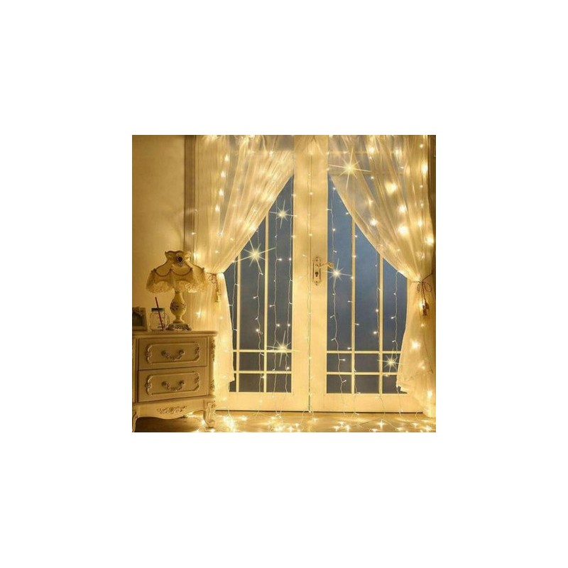 Vianočné ozdobné led osvetlenie je to svetelný led záves,záclona,cencúle,veľmi vhodná aj svadobná výzdoba často používaný napríklad aj na výzdobu okna je dlhý 2 metre /svietiaca časť/ a jednotlivé visiace časti 2m /myslené je tým svietiaca časť/,je z led diód tak má nízku spotrebu a nehreje sa ako klasická žiarovka,led diódy sú na transparentom silikónovom kábli nie plastovom čiže sa nezničí vplyvom počasia /priehľadnom/ kvalitnom kábli,vhodný je do exteriéru aj interiéru,má IP krytie,prívodný kábel do zásuvky má 1,5m.Je teplej bielej farby,dá sa nadpájať jeden za druhým bez prerušenia svetelnej časti,všetko potrebné k napojeniu je v každom balení,led záves má 300led diód.Každá desiata led dióda bliká - flashuje taktiež teplým bielym svetlom čím vytvára jasný efekt ligotania. Vhodný aj na výzdobu svatby,sál,svetelných stien k fotografovaniu ale hlavne ako vianočná výzdoba.